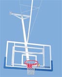Рама баскетбольного щита крепится к двум параллельным балкам. С лицевой стороны над щитом крепятся поддерживающие складывающиеся звенья.