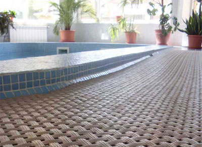 Покрытиями ARENA AQUA можно оборудовать не только зоны, находящиеся в непосредственной близости от воды, но и, например, дорожки, ведущие от бассейнов в душевые, к шезлонгам или столикам. Причем они не обязательно должны быть строго геометрически-угловой формы. Плитки ARENA AQUA легко режутся, и поэтому готовое изделие может быть любой, даже круглой, формы.