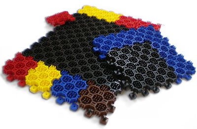 Серия включает три совместимых типоразмера модулей, позволяющие быстро укладывать на покрытии любые рисунки без разрезания элементов, а так же обрамляющие пластиковые канты, предотвращающие снимание краев покрытий.