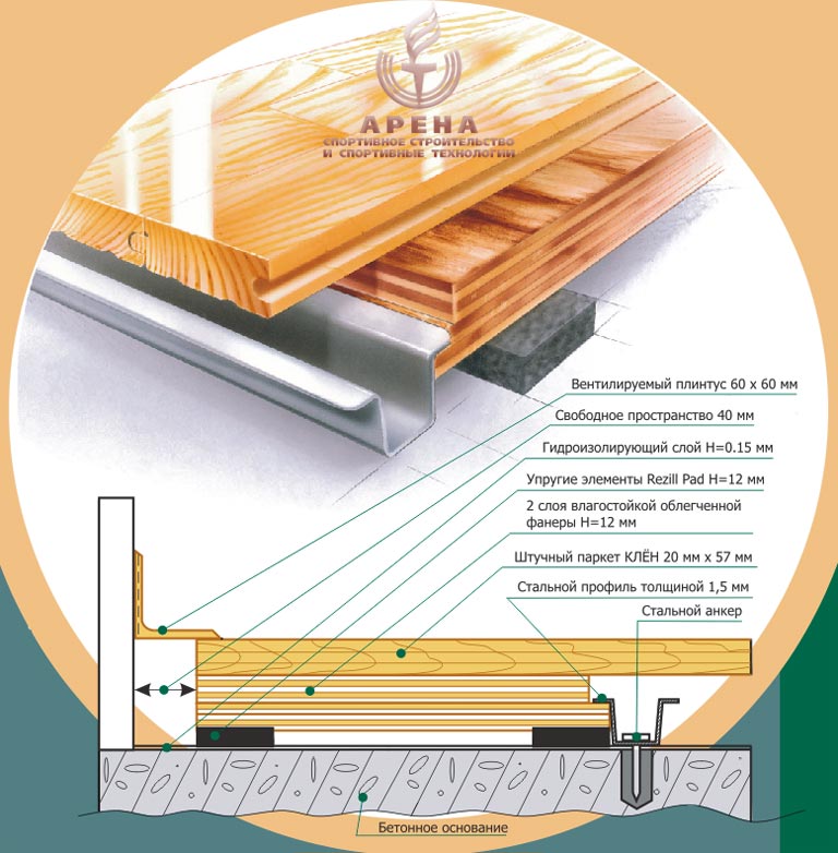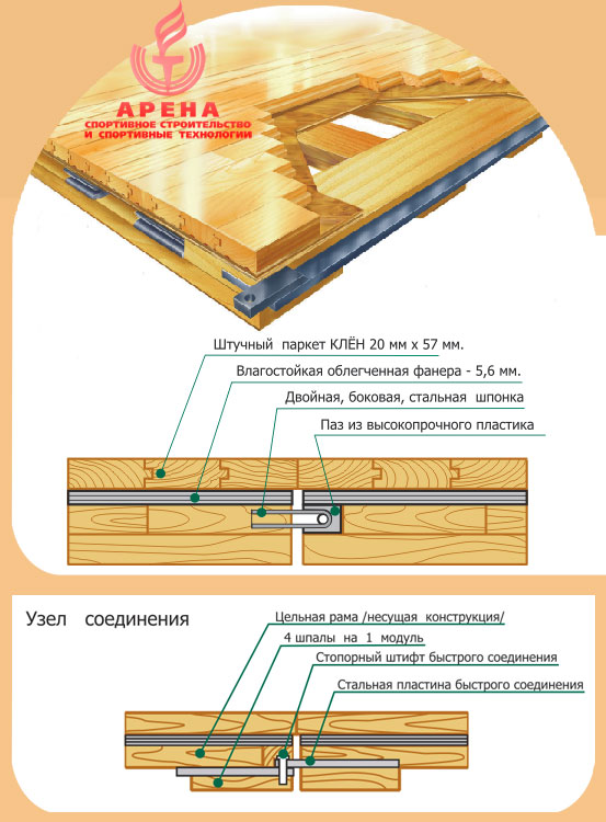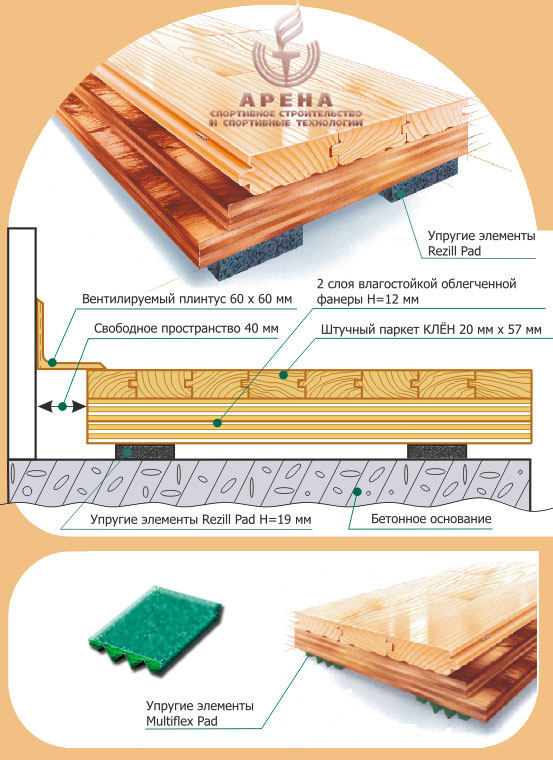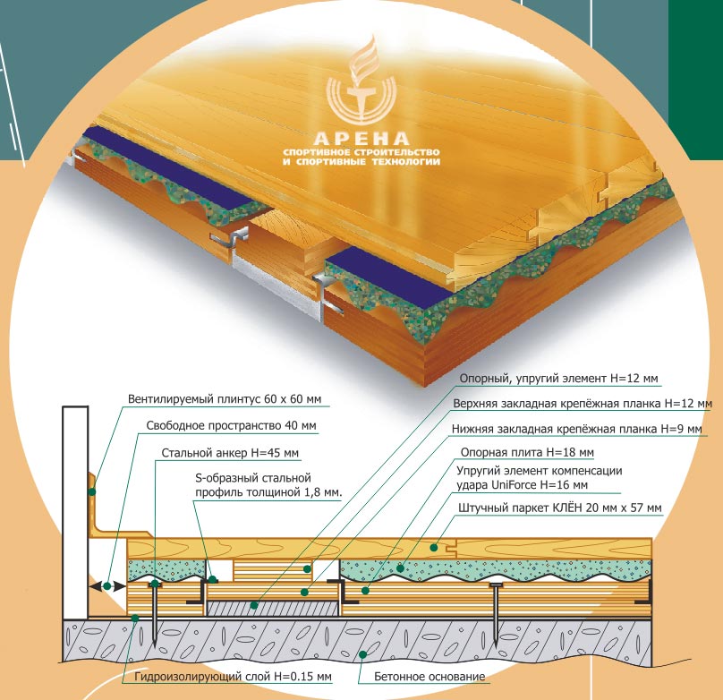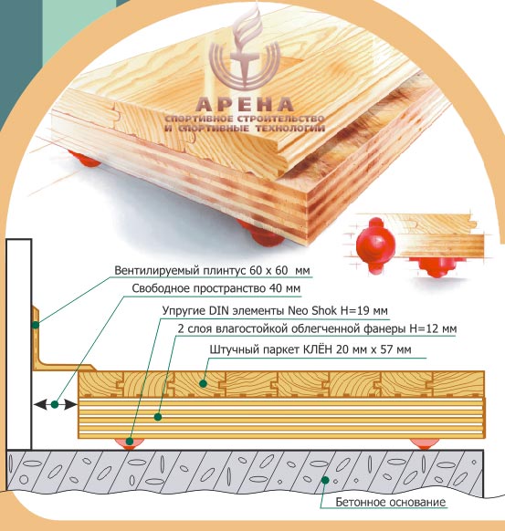 Простейшая система спортивного пола с уникальными упругими элементами.