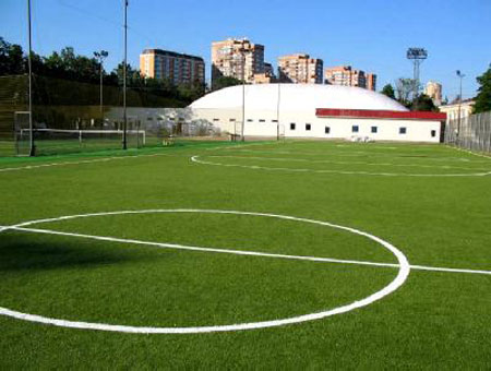 Покрытие – искусственный газон "Строук". Площадь футбольного поля – 2210 м2.